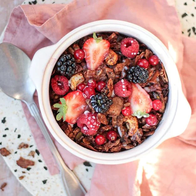 Mistura crocante de noz pecan e caju com sementes de abóbora, girassol, trigo sarraceno e linhaça, delicadamente adoçada com agave e finalizada com verdadeiras pepitas de chocolate negro. Começa o dia com energia com a Power granola frutos secos & sementes chocolate.